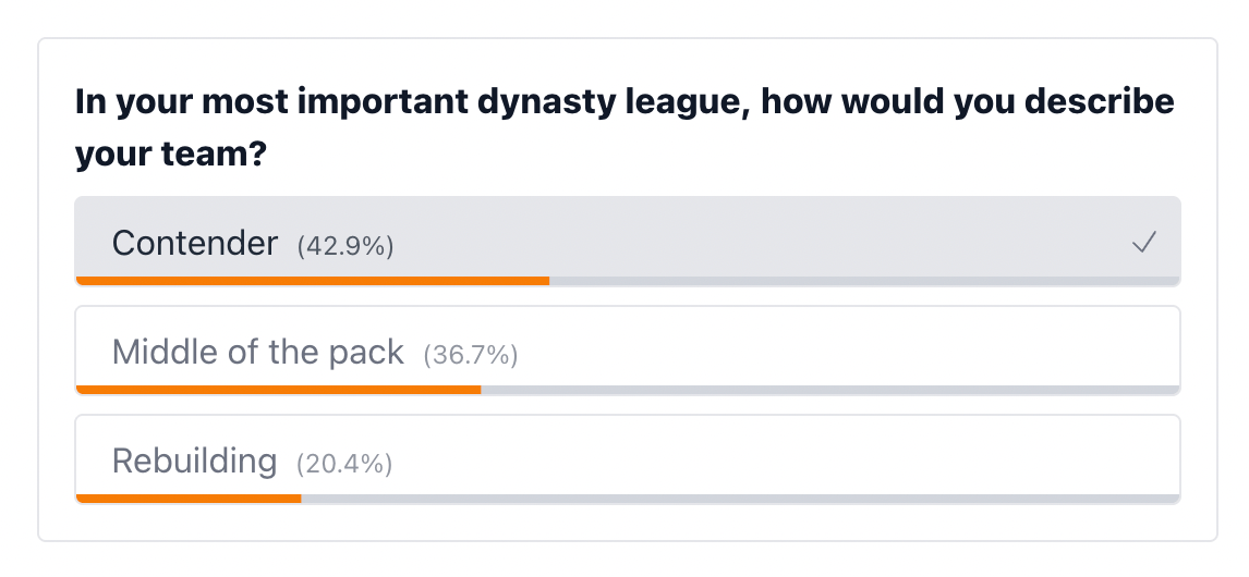 Our take: Not surprised to see Contenders leading the way at 42.9% — you’re all subscribed to Dynasty Pulse afterall 😉