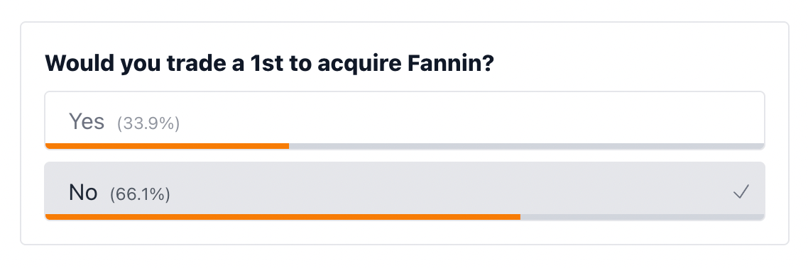 Last night, I asked you guys if you’d trade a 1st to acquire Fannin. 66.1% of you said no.